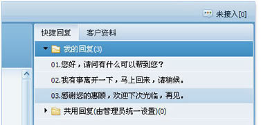 员工可设置部分常用的回复用语、礼貌用语等作为快捷回复语。使员工与客户的沟通更快捷、更高效。 ![]() 快速回复功能除了员工自行设置快捷回复语之外,还支持快速回复内容的共享,每个工号都可以在“我的回复”区域里右键点击,将自己的快速回复内容复制到共享回复中,便于其他工号在答复咨询时使用。 ![]() 客户资料:记录来访客户详细资料