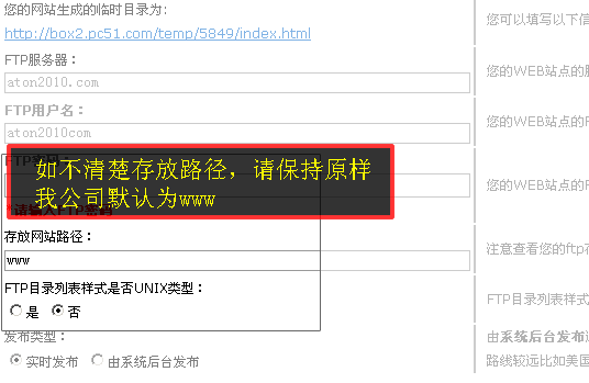 如果是独立购买的嘉联云建站,还需要输入ftp服务器中的网站目录等信息,如不清楚请保持原样,或者咨询主机提供商业。